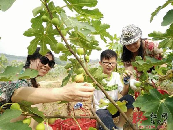 涟源桥头河飞宏农业公司200亩无花果喜获丰收,前来采摘的市民络绎不绝。基地坚持绿色生态种植模式,施用有机肥,采用人工除草,物理防止鸟害,另外,无花果天然抗虫,不需要施用农药,为绿色、原生态提供前提,也保证了纯天然品质。图为市民正在采摘无花果。(吴世梁 周彩霞 摄)