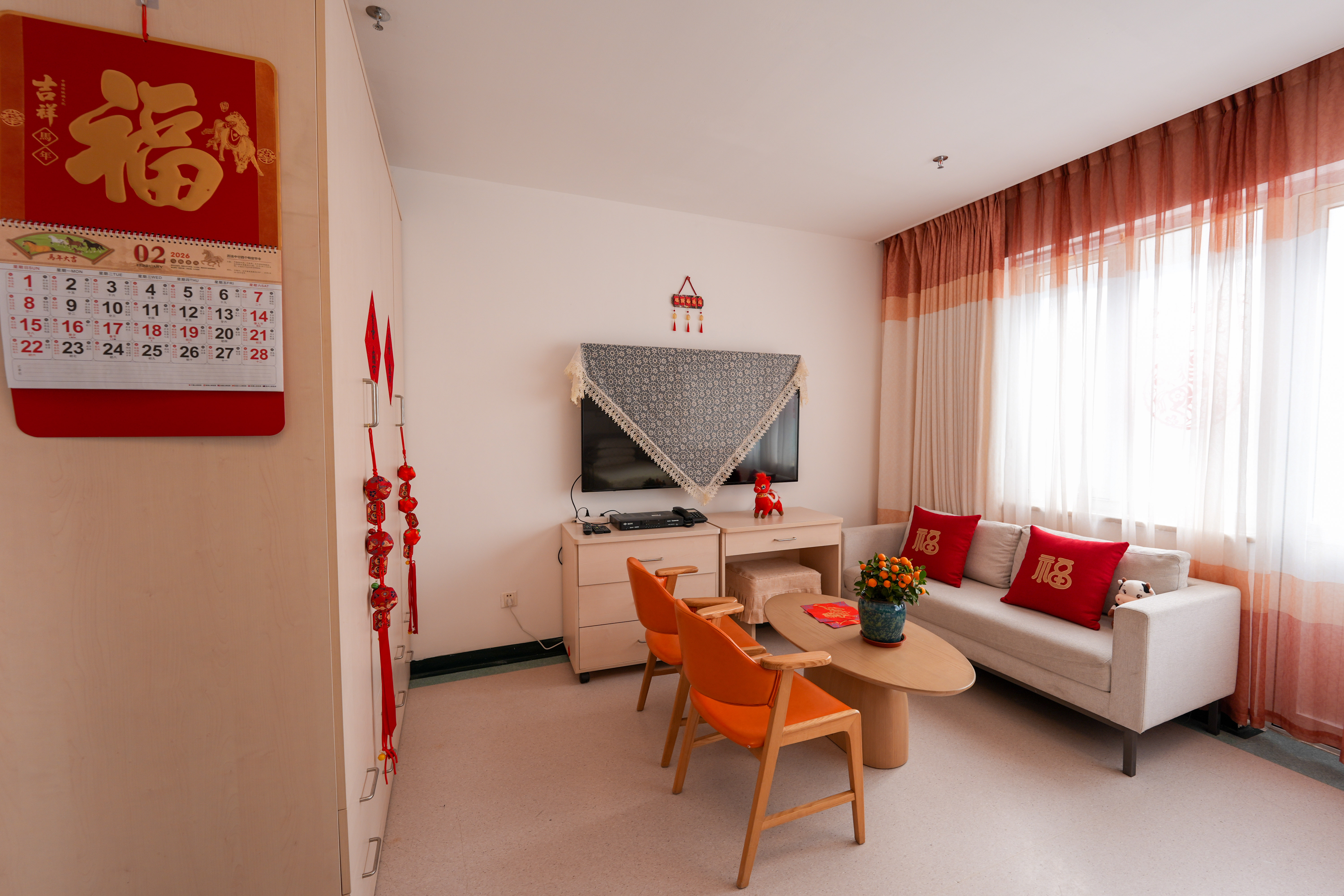 2月10日拍摄的银龄老年公寓房间内陈设。