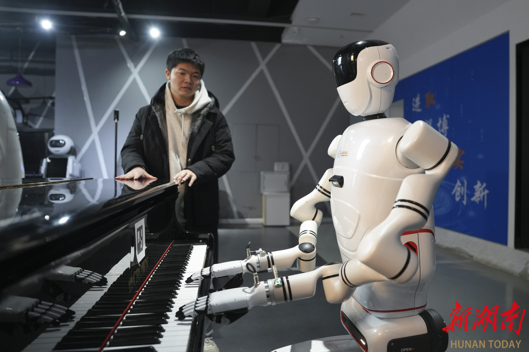 湖南超能机器人技术有限公司展厅,一台人形机器人在弹奏钢琴。湖南日报全媒体记者 辜鹏博 摄
