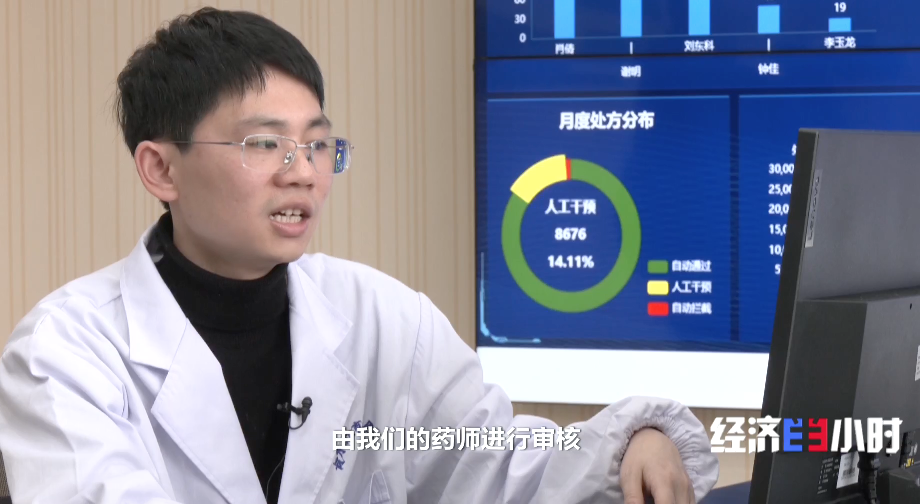村医李友娇开具的处方,通过网络传送到了30公里外的冷水江市医共体审方中心。智能审方系统,再加上药师们的人工审方,给村民安全用药增加一道防火墙。