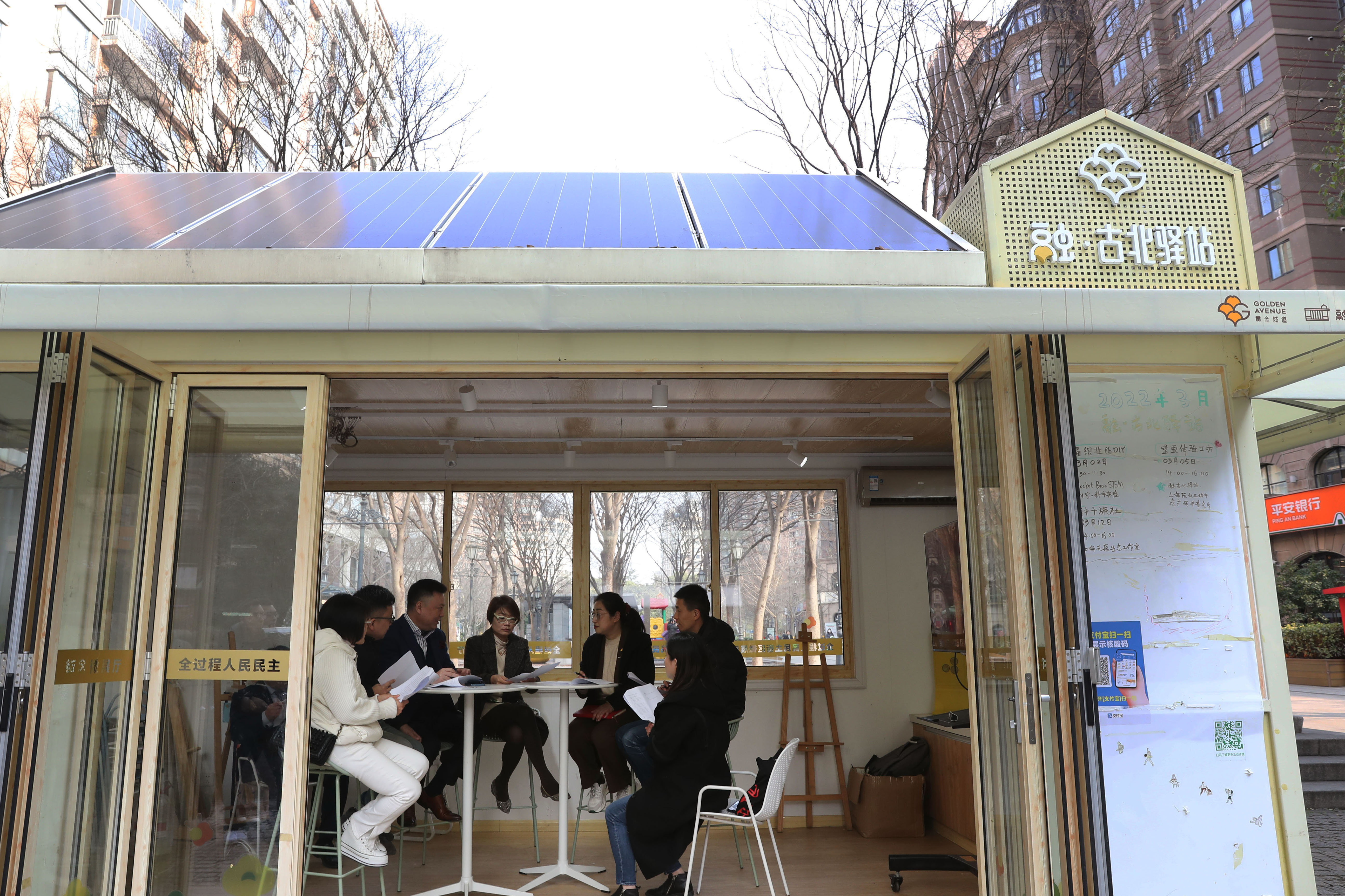 2023年2月17日,在上海虹桥街道“融·古北驿站”,人大代表向辖区内的商户宣传普及新施行的《上海市住房租赁条例》。虹桥街道是全国人大常委会法工委2015年在全国设立的首批四个基层立法联系点之一。新华社记者 刘颖 摄