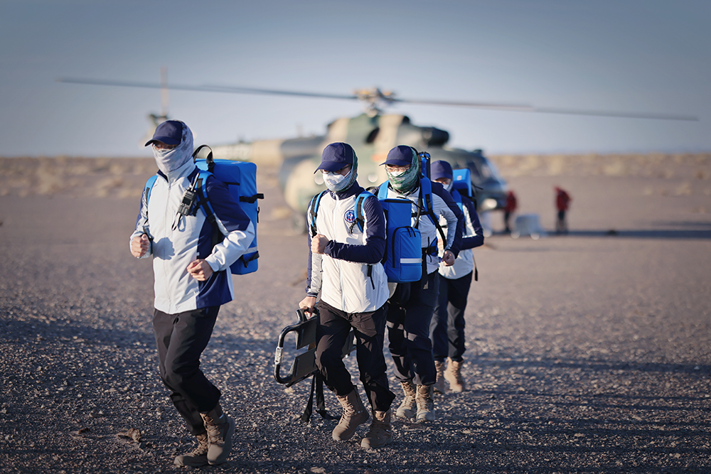 “习主席指出,打仗在某种意义上讲就是打保障。作为医疗救护队,保障航天员的生命安全就是打胜仗,只要存在0.01%的危险,我们就必须做到100%的准备。”神舟载人飞行任务医疗救护队队长顾建文介绍道。主着陆场涵盖沙漠、丘陵、湖泊、戈壁等复杂地形,为顺利完成任务,率队到达着陆场的这些天,顾建文一刻也没有休息。他带领医疗队员乘坐直升机机动1800公里,飞越巴丹吉林沙漠,全面考察地形地貌,细致完善救治方案,实地调研后支医院应急医疗准备情况。