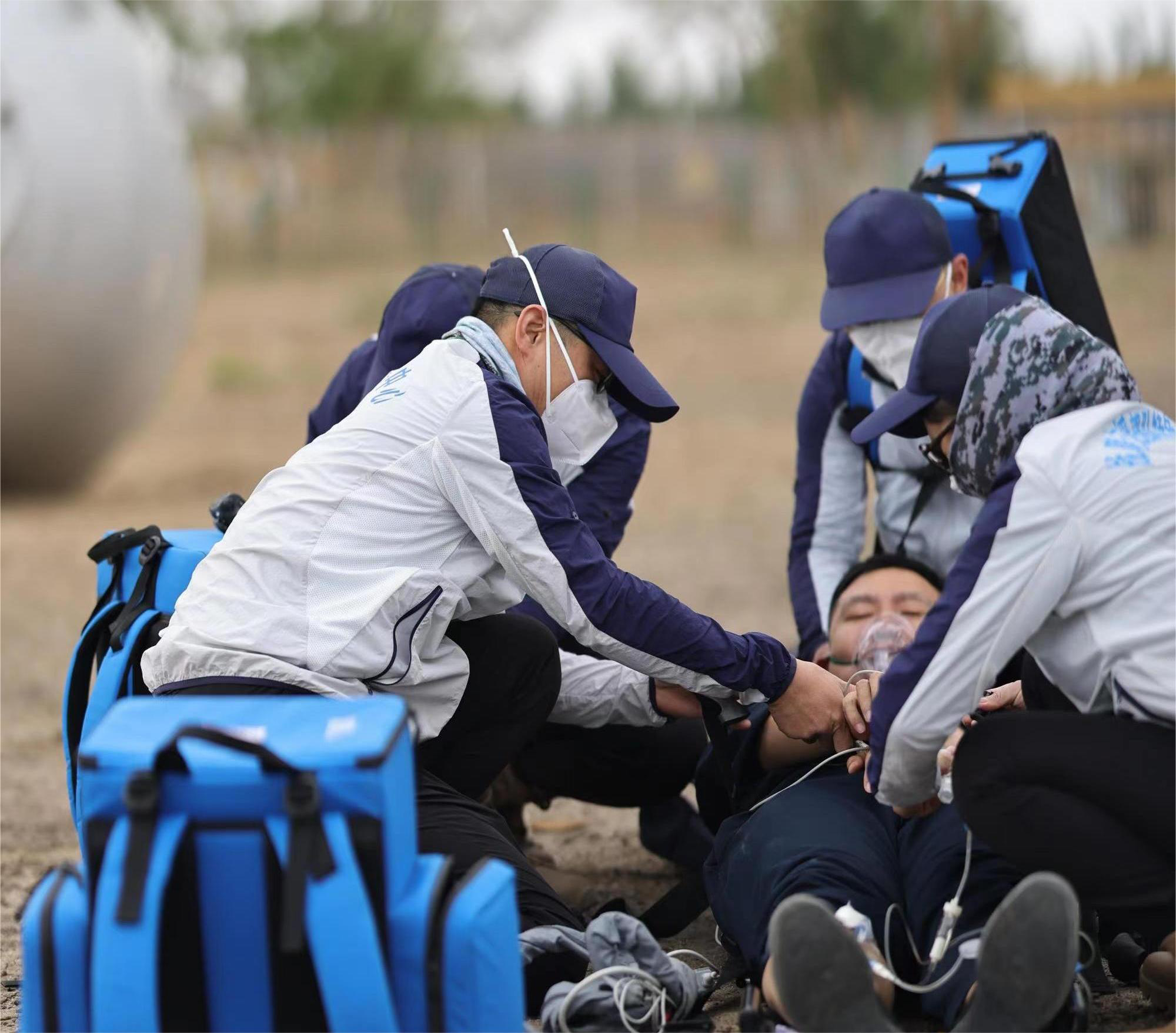 航天员在轨时间长,着陆场地质条件复杂,这一系列情况导致伤情出现概率增加,医疗救护困难加大,必须苦练医疗救护技能,及时到达、迅速诊断、有效处置。