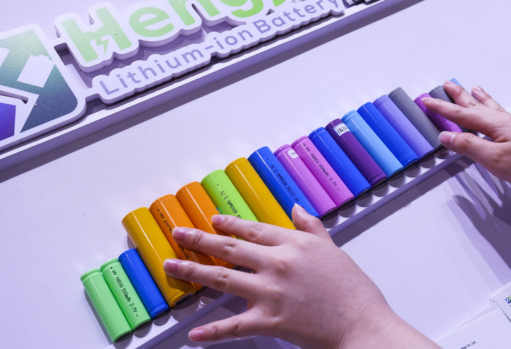 参展商在第135届广交会新能源展区布置锂电池展品(2024年4月15日摄)。新华社记者 刘大伟 摄