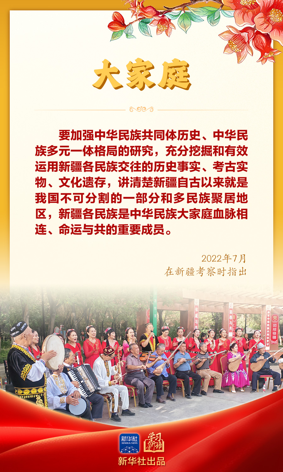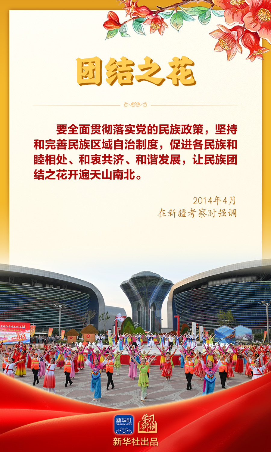 今年是新疆维吾尔自治区成立70周年。党的十八大以来,习近平总书记在不同场合对做好新疆工作、加强民族团结作出生动阐释,为铸牢中华民族共同体意识指引方向。