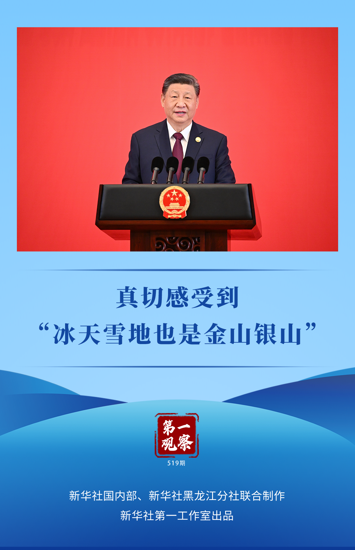 2月7日晚,第九届亚洲冬季运动会开幕式在哈尔滨举行。当日中午,在开幕式欢迎宴会致辞时,习近平总书记深有感触,“来到哈尔滨,我们真切感受到‘冰天雪地也是金山银山’”。